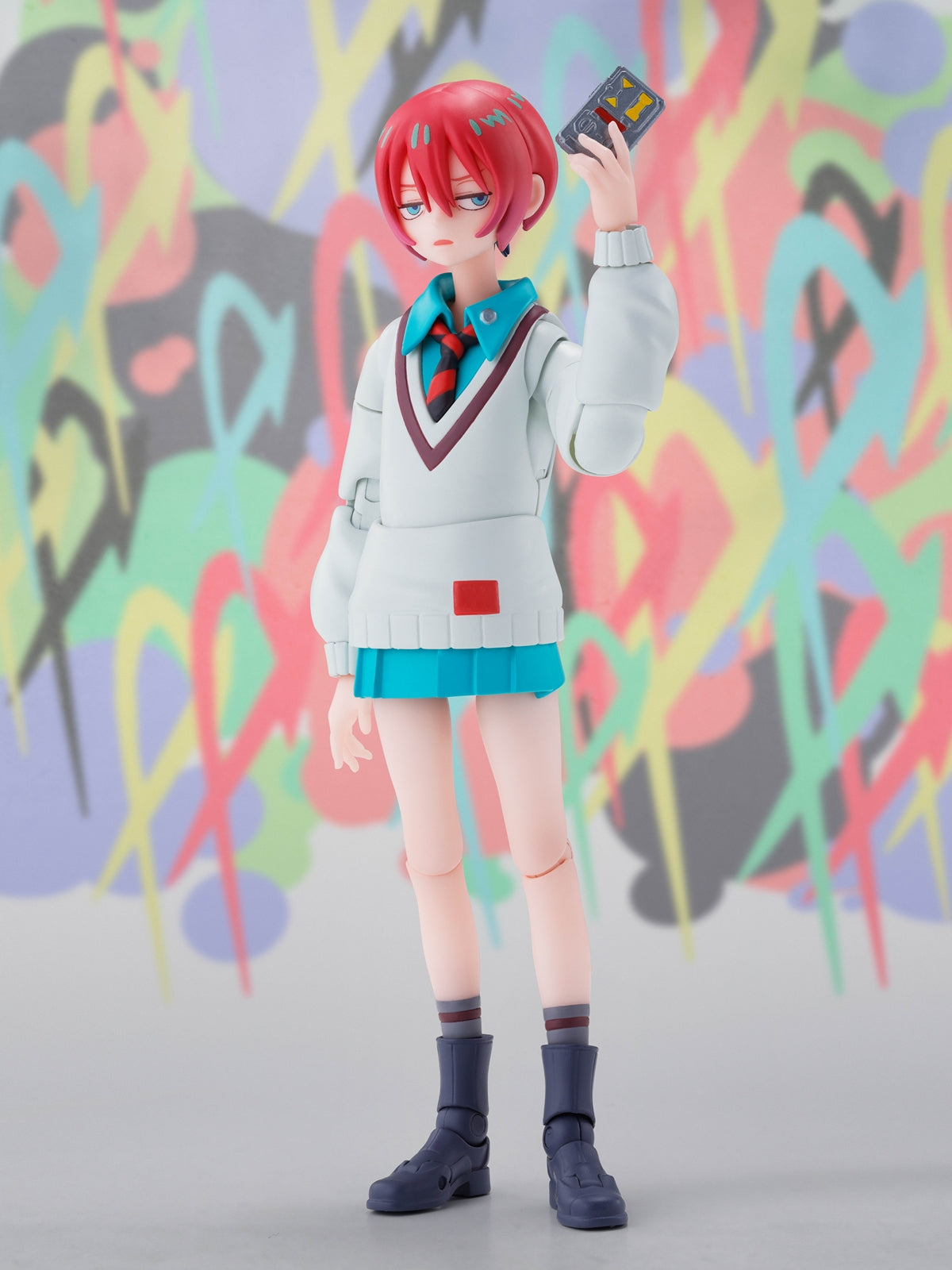 The included exchangeable expression parts allow you to recreate her wide range of facial expressions as seen in the show. It also comes with a smartphone and a Haro. Enjoy a variety of different play options!